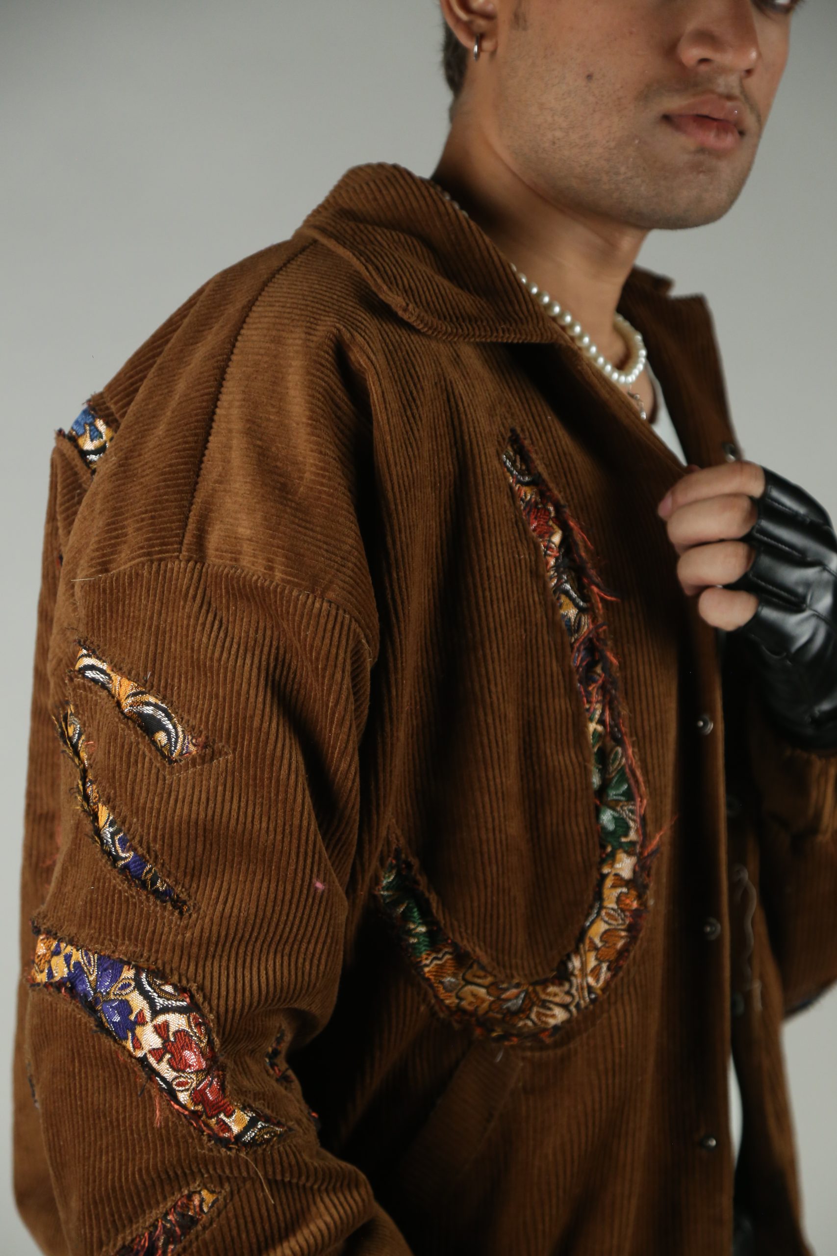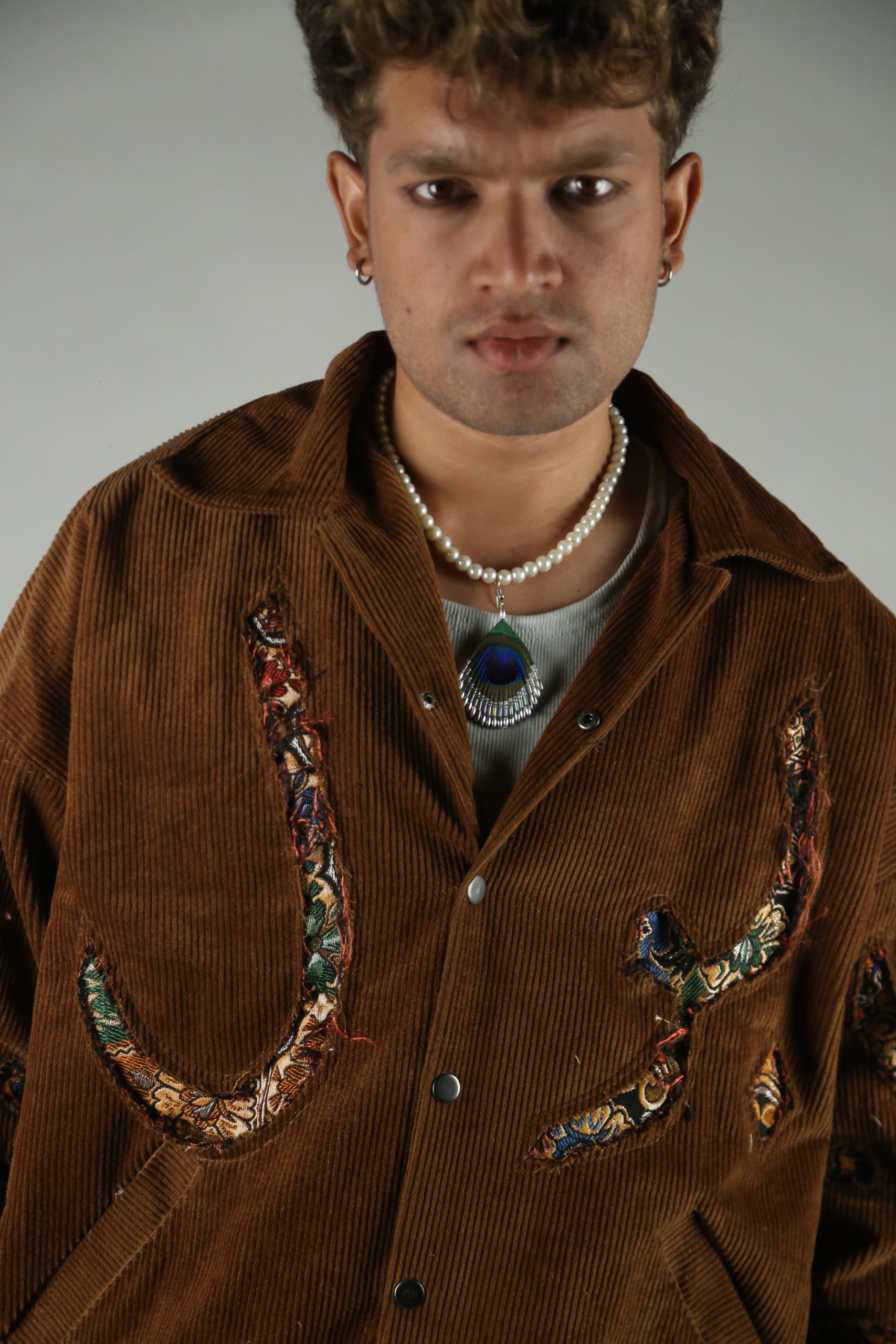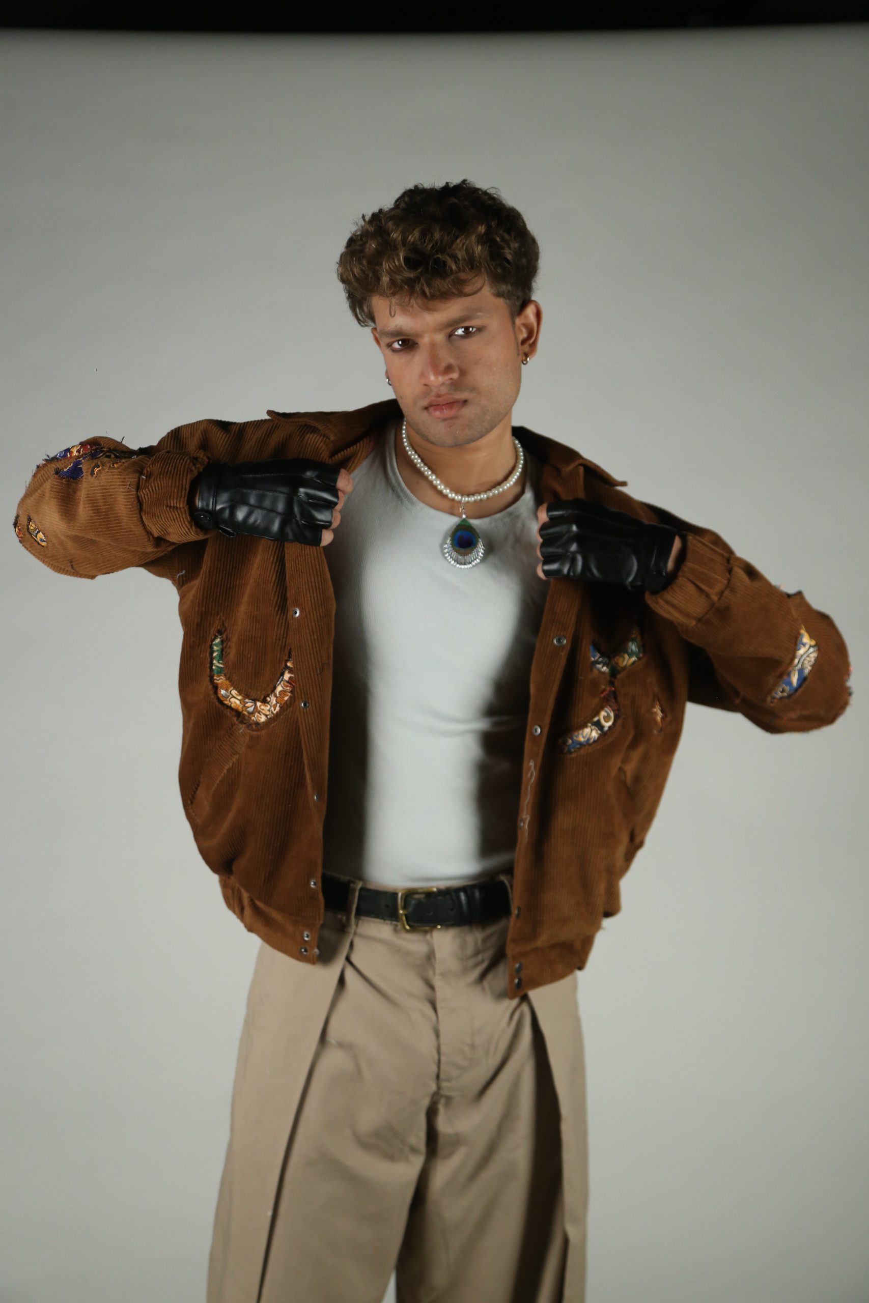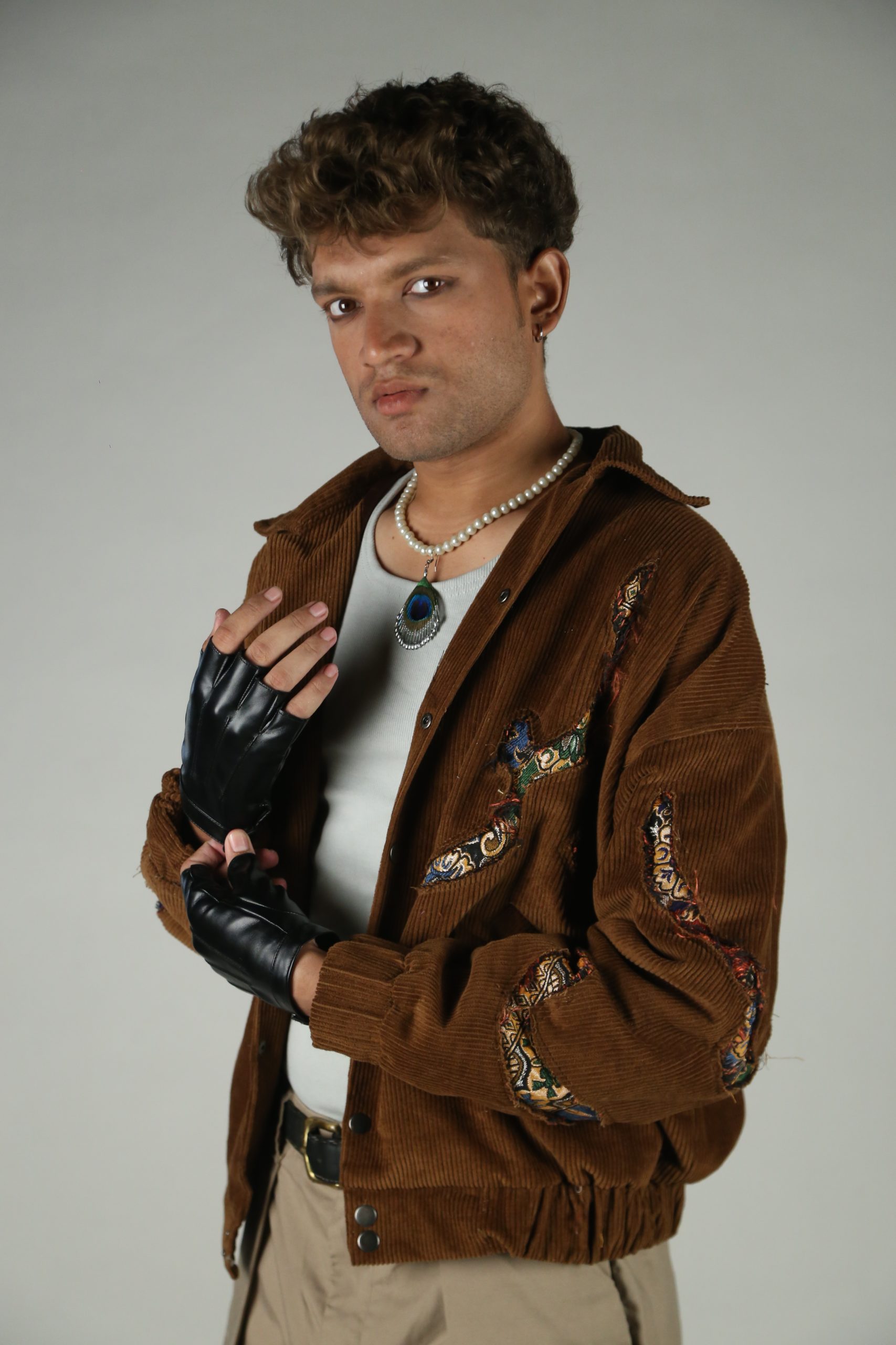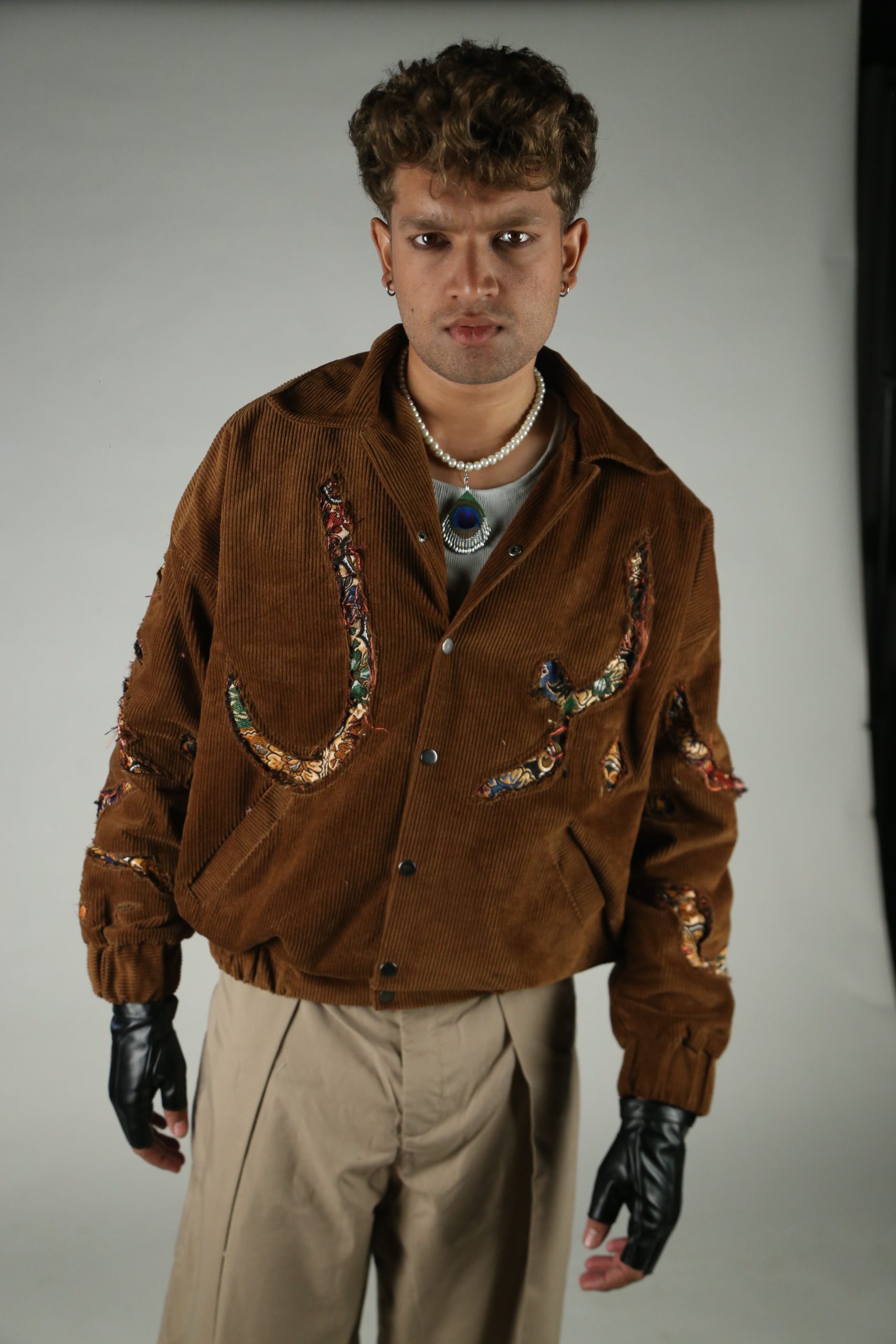 Inspired by Faiz’s iconic poem, Bol ke lab azaad hain tere, this jacket is stitched for the outspoken. Made from coterie fabric and layered with cutout patches carrying the powerful verse each word on one part of the jacket, it transforms speech into wearable art. Soft, warm, and unapologetically political.