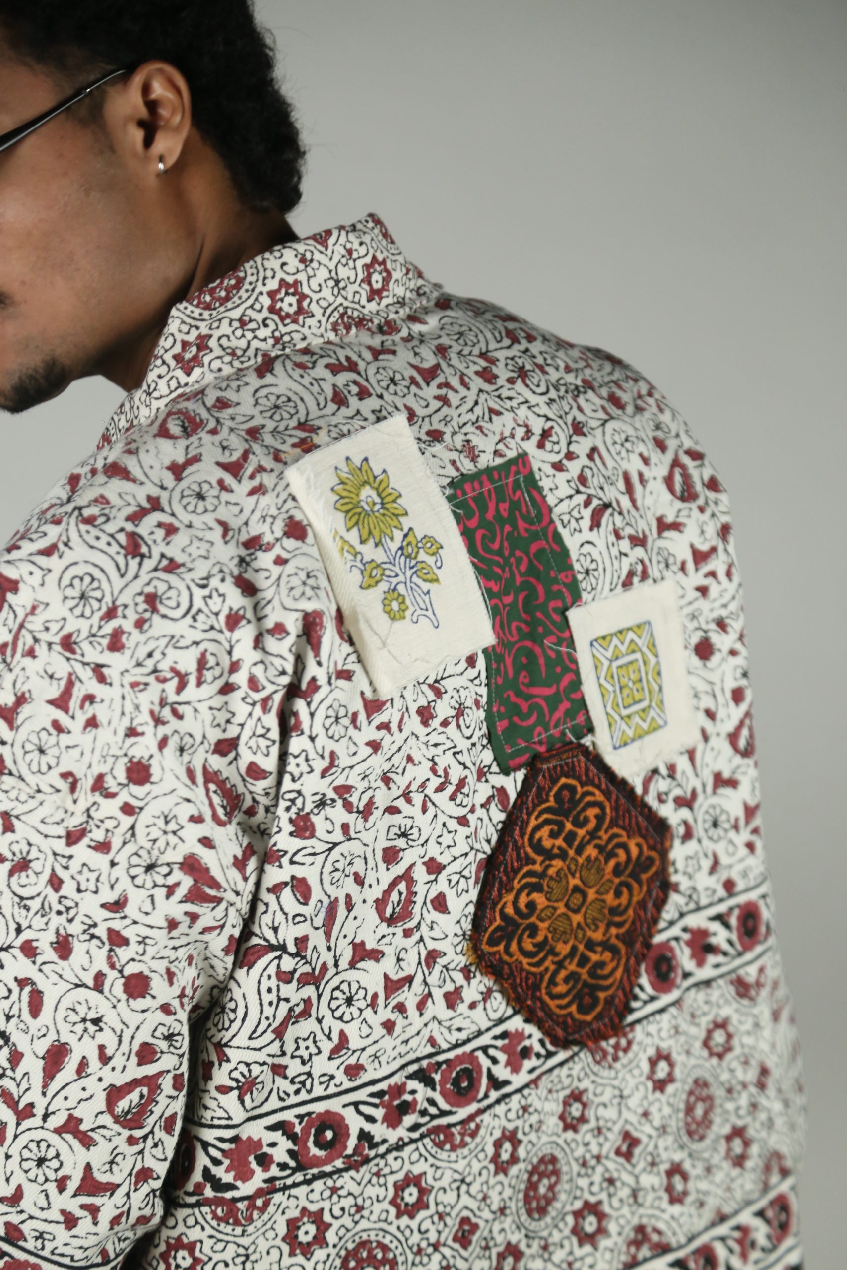 This piece celebrates connectedness — paiwand — the way motifs bind together across regions, how print traditions weave a shared language. It’s a jacket that carries many hands and many lines