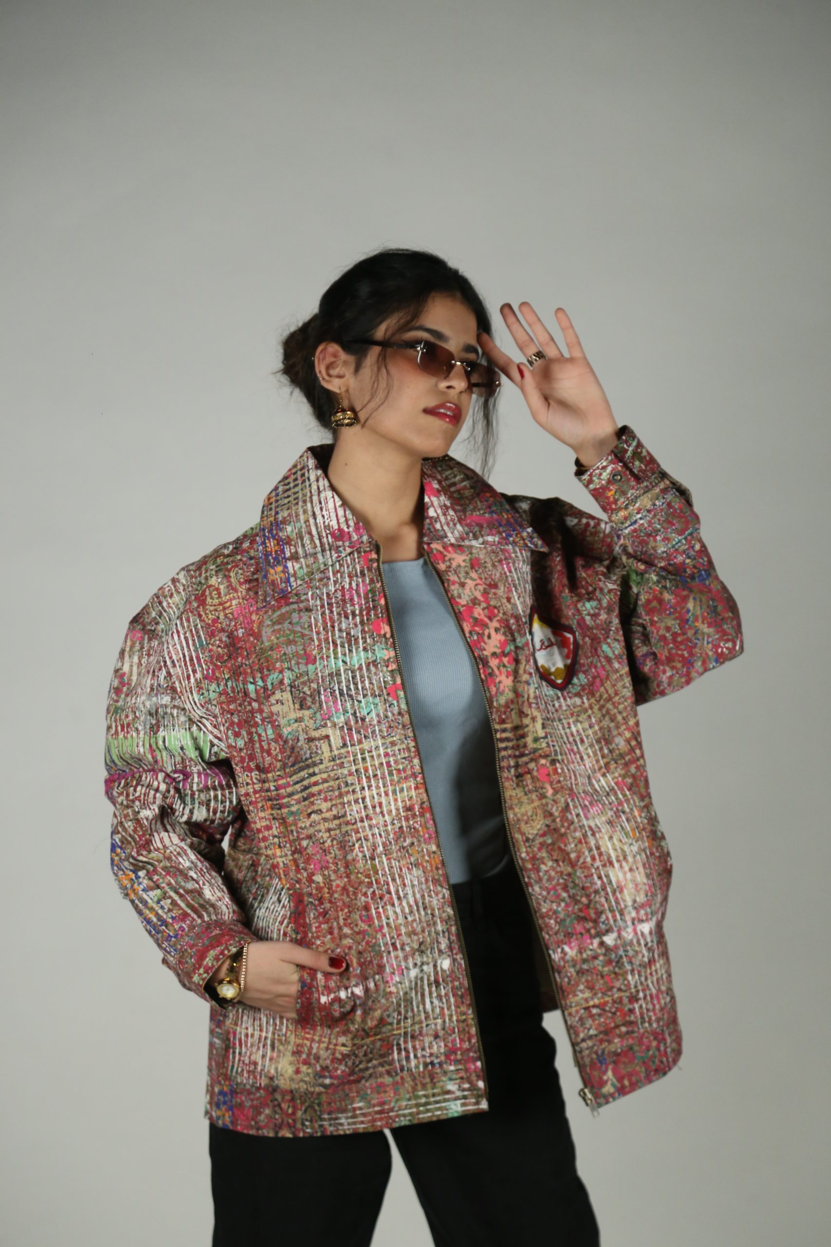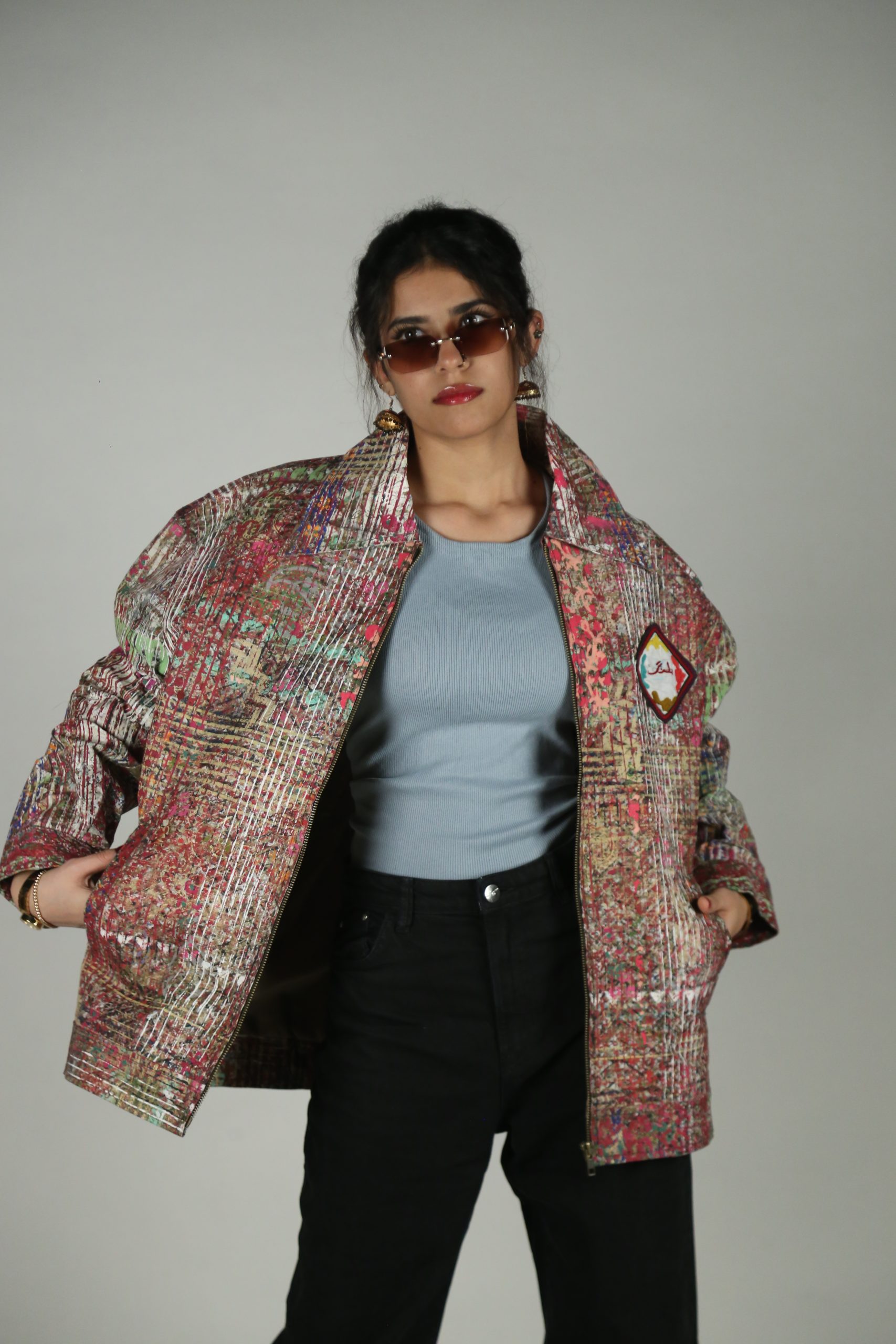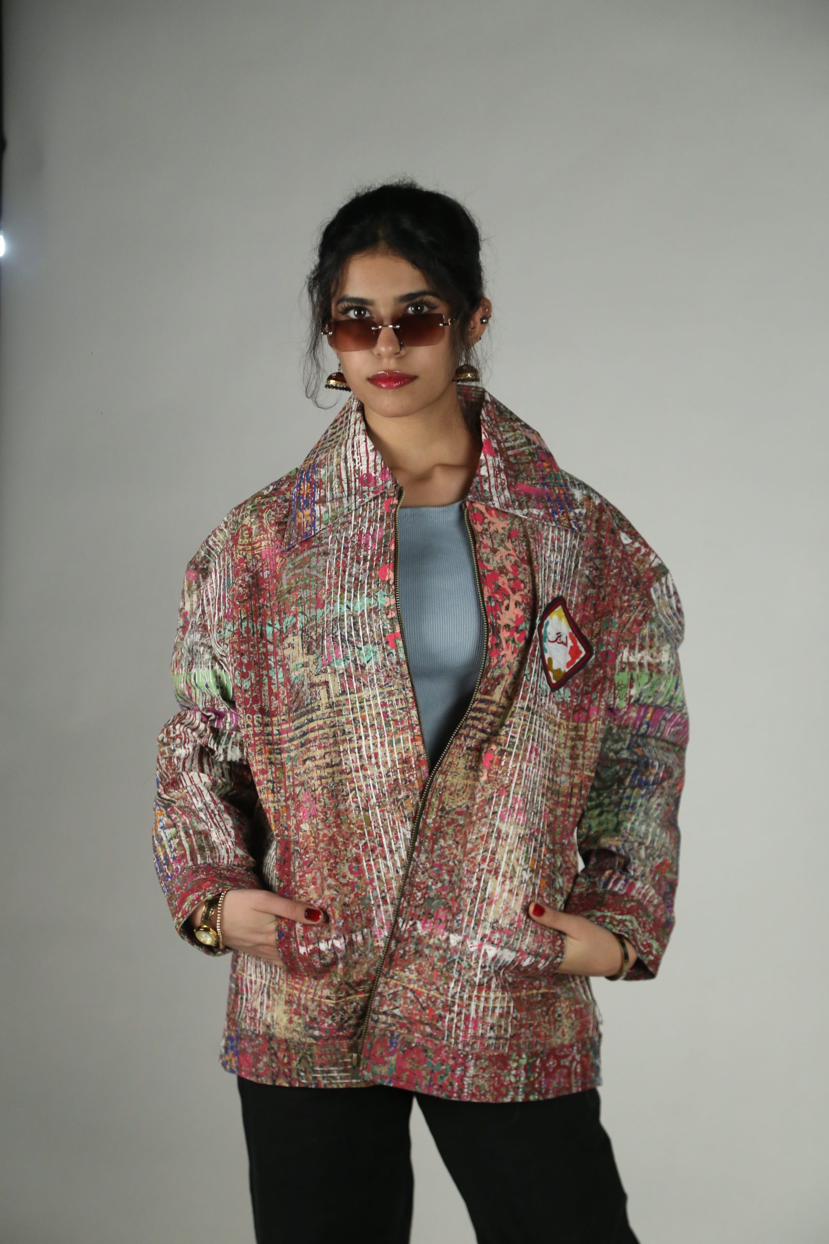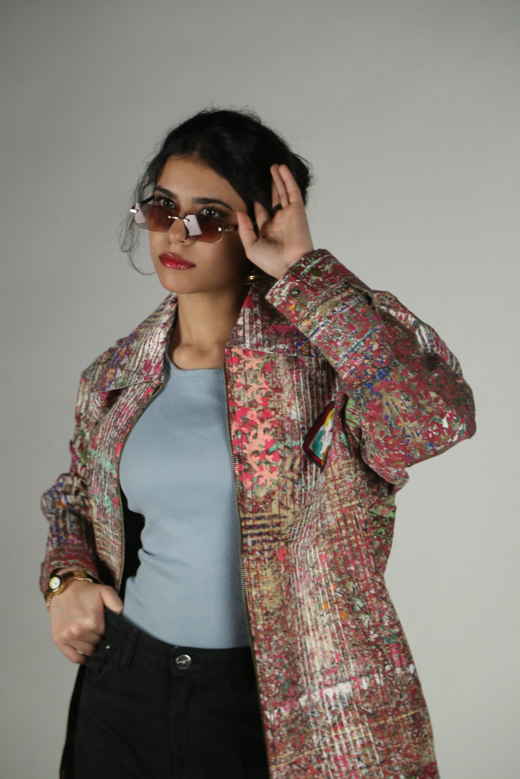 Rang’daar is crafted for the fearless — the ones who walk into a room and change its temperature. The name itself means “covered in color,” hinting at a personality that doesn’t shrink or mute itself. Inspired by hand-printed festival textiles and street palettes, Rang’daar represents the spirit of those who express, create, and dare loudly. It is not a jacket you wear quietly. It is a jacket that announces you.