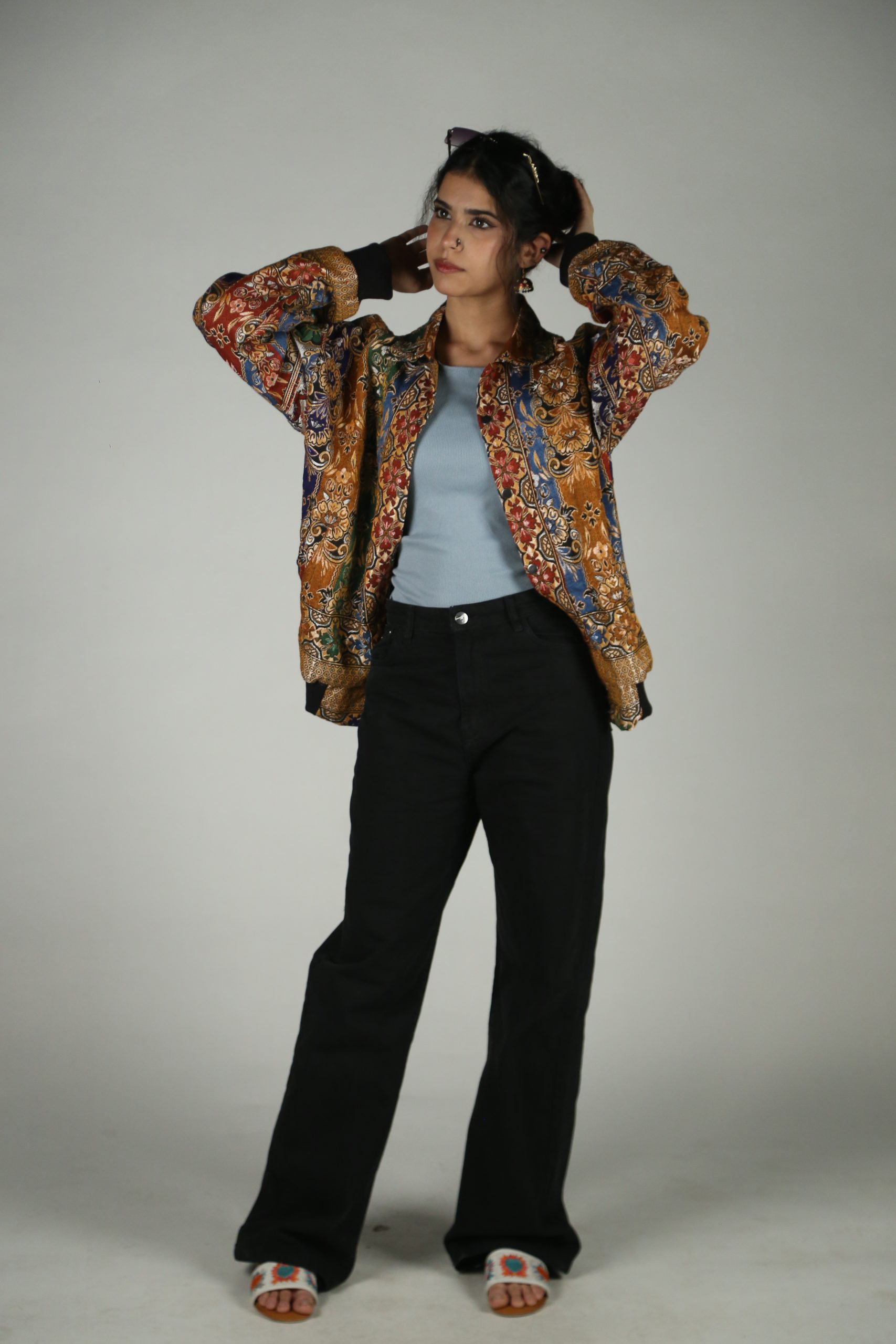 Rangeeli is a mosaic of textures — a jacquard jacket with a colorful woven pattern that moves as you move. The ribbed cuffs add a streetwear finish, while the full astar lining keeps you warm. It’s vibrant without trying, loud without noise — a wearable burst of color.